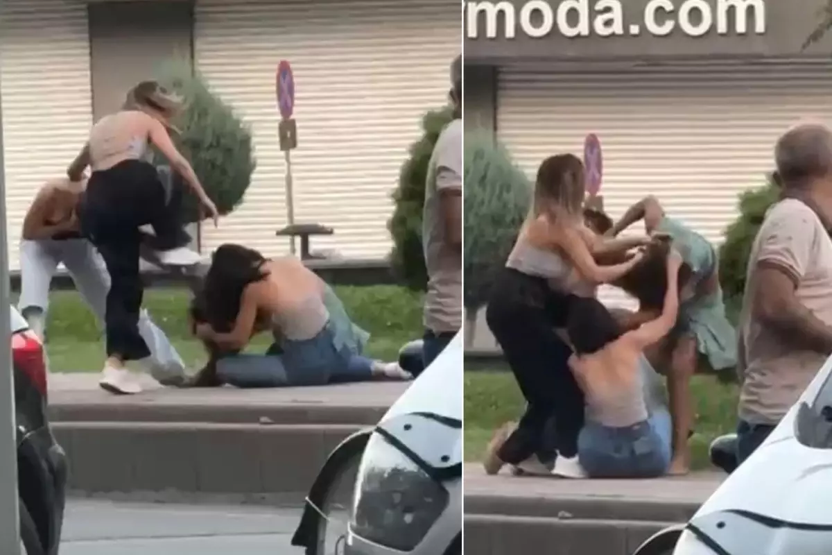 Kavgayı ayırmakta zorlanan etraftaki erkekler, büyük uğraşlar sonucu bayanları birbirinden uzaklaştırdı. O anlar, etraftakiler tarafından cep telefonu kamerasıyla görüntülendi.