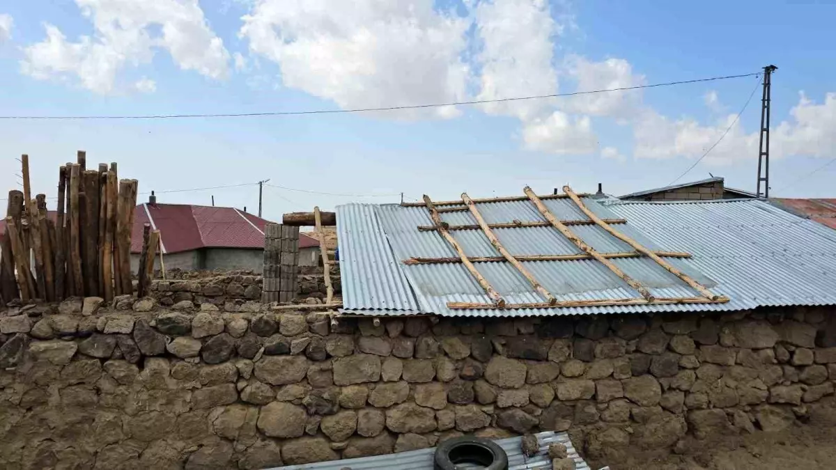 Bitlis’in Adilcevaz ilçesinde tesirli olan rüzgar, ahır ve eklentilerinin çatılarının uçmasına neden oldu.