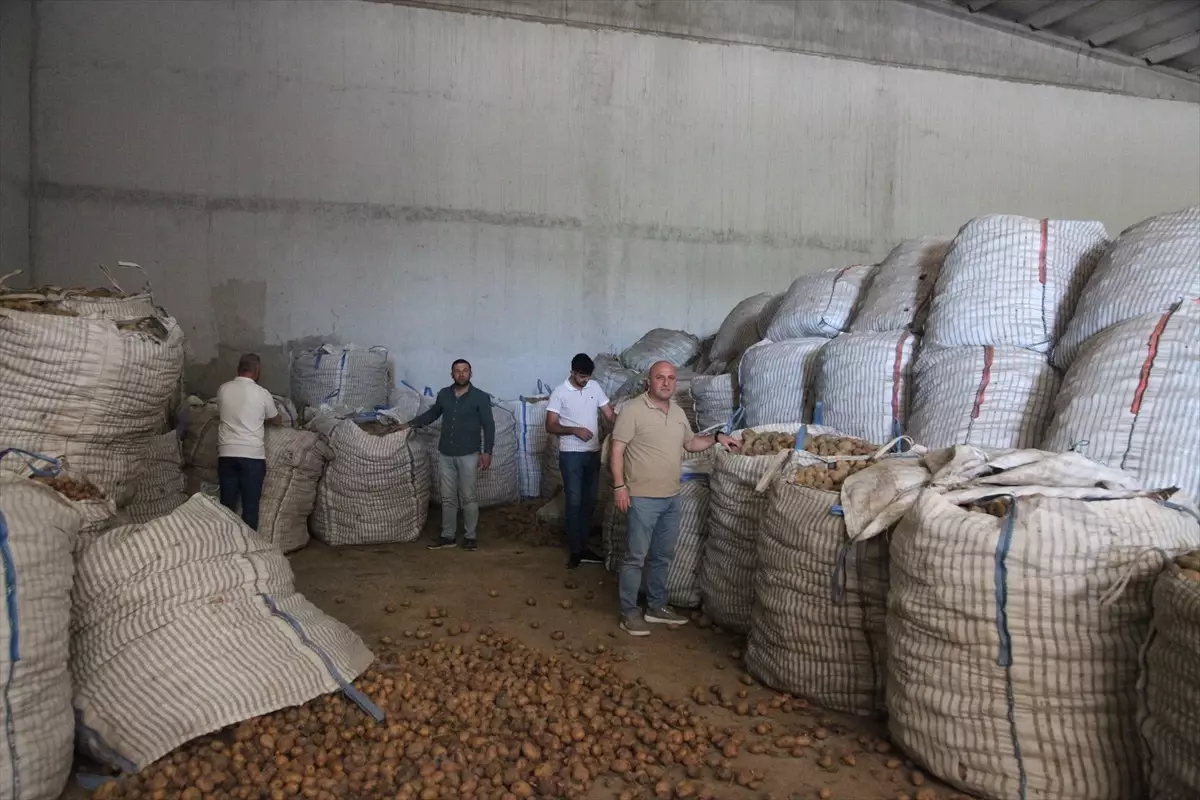 Bitlis’in Ahlat ilçesinde çiftçiler, depolarda bekletilen patateslerin alınması için takviye bekliyor.