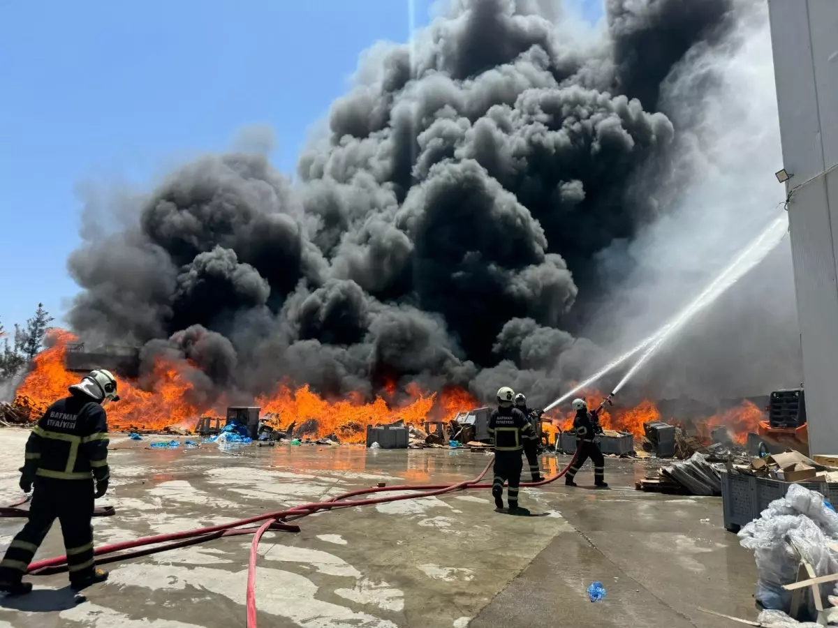 BATMAN’da bir meyve suyu fabrikasında yangın çıktı. Ağır siyah dumanların gökyüzünü kapladığı yangın, grupların müdahalesiyle denetim altına alındı.