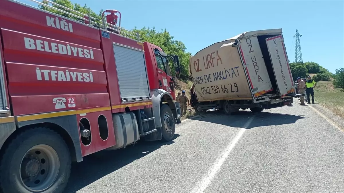 Sürücüsü ve plakası öğrenilemeyen bir nakliyat firmasına ilişkin kamyonet, Kiğı-Karakoçan kara yolundaki Demirkanat köyü mevkisinde denetimden çıkarak takla attı.