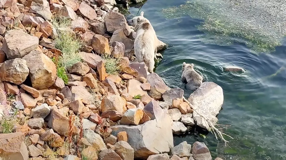 Bitlis’te Bozayıların Gölde Yüzme Anları Görüntülendi