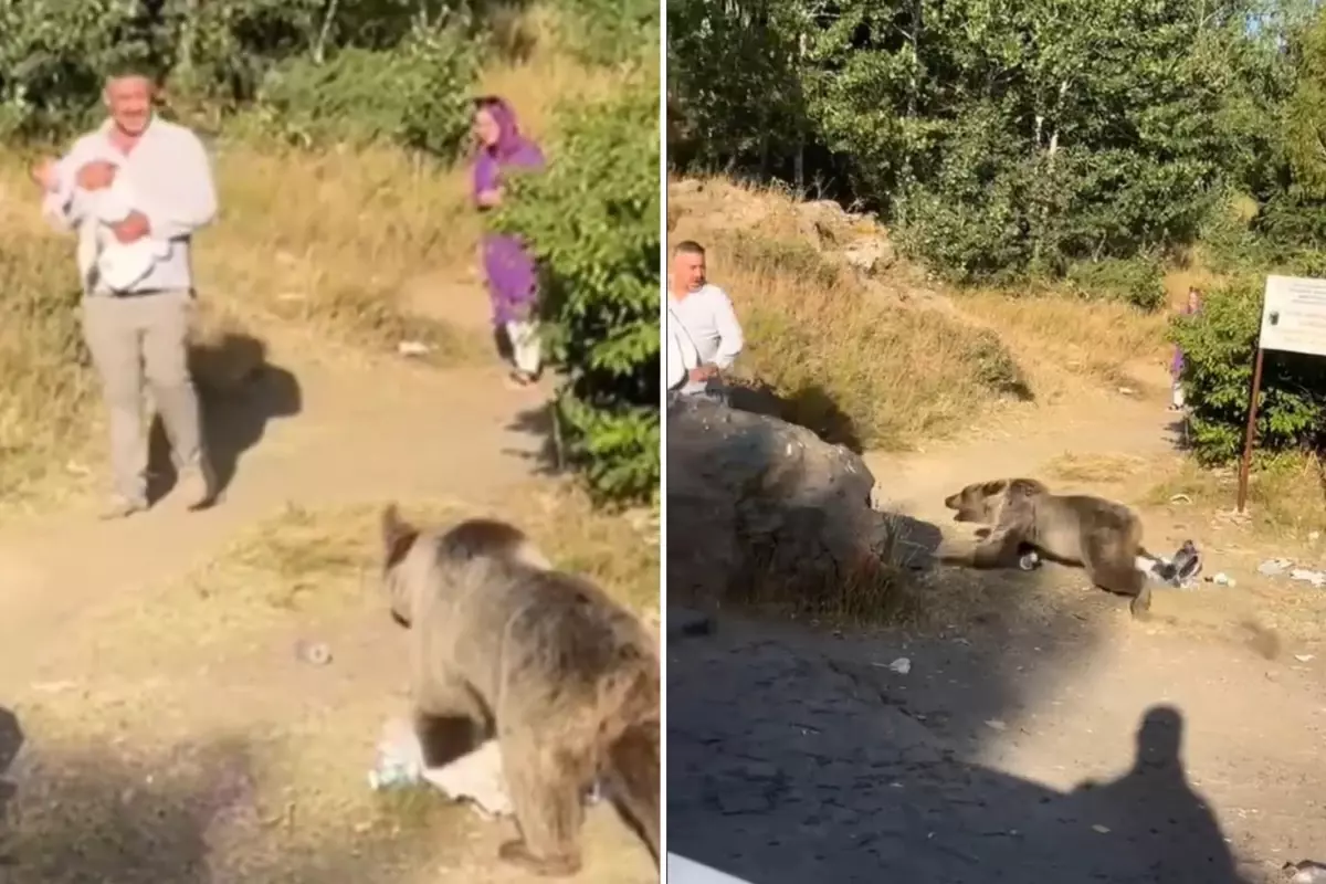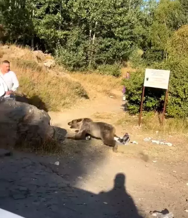 Bitlis’in Tatvan ilçesindeki Nemrut Krater Gölü’nde seyahate çıkan bir ailenin üzerine ayı saldırdı. Kucağında bebek bulunan vatandaşa yönelen akın anları cep telefonu kamerasına yansıdı.