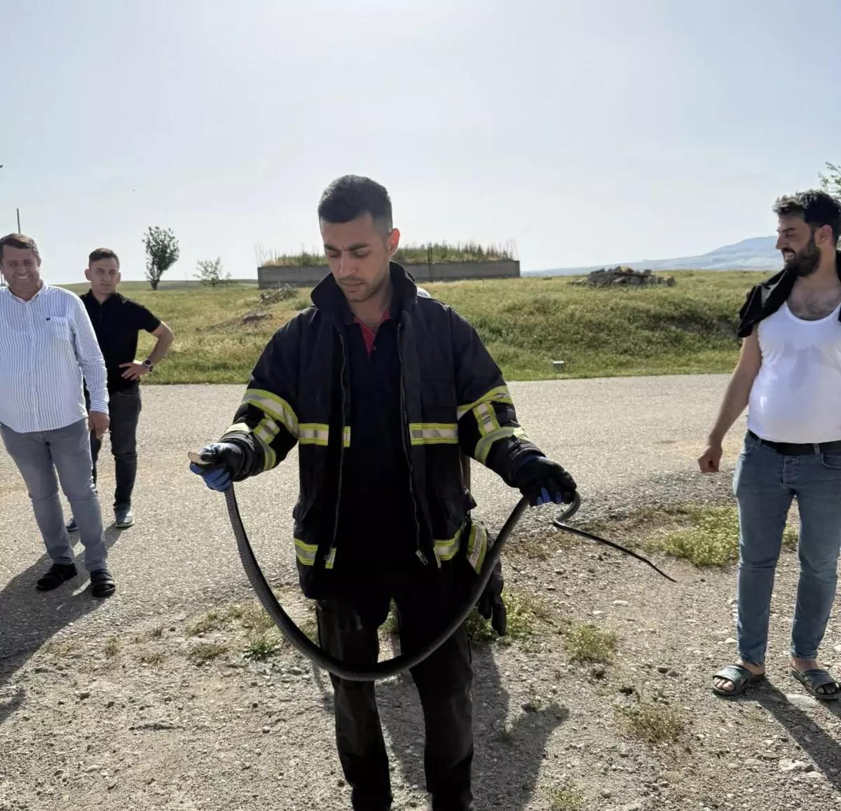 Batman’ın Kozluk ilçesinde bir meskenin tavanına girip paniğe neden olan yılan, itfaiye grupları tarafından çıkartıldı.