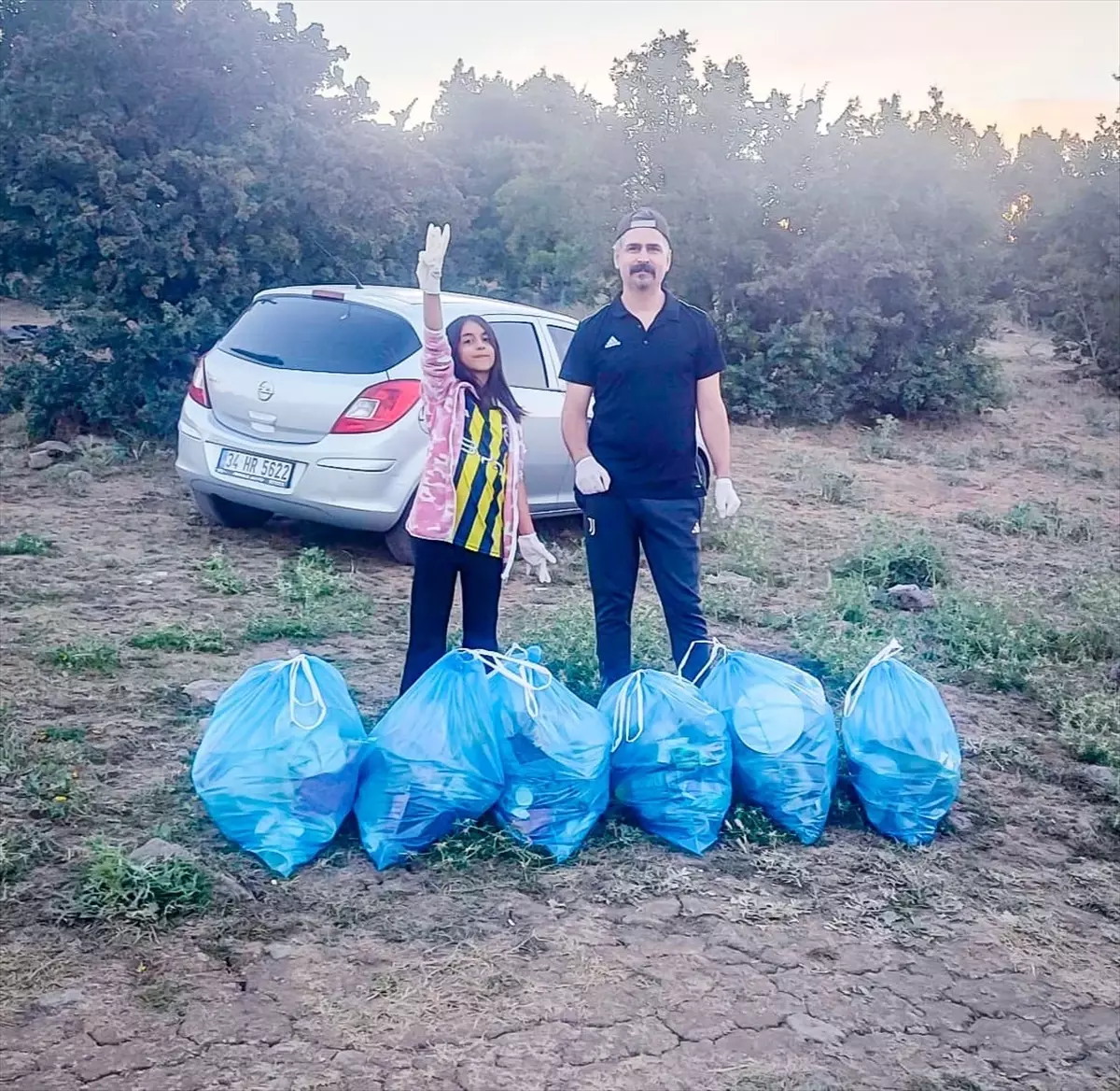 Bingöl’de öğretmen ve kızı mesire alanına bırakılan çöpleri topladı.
