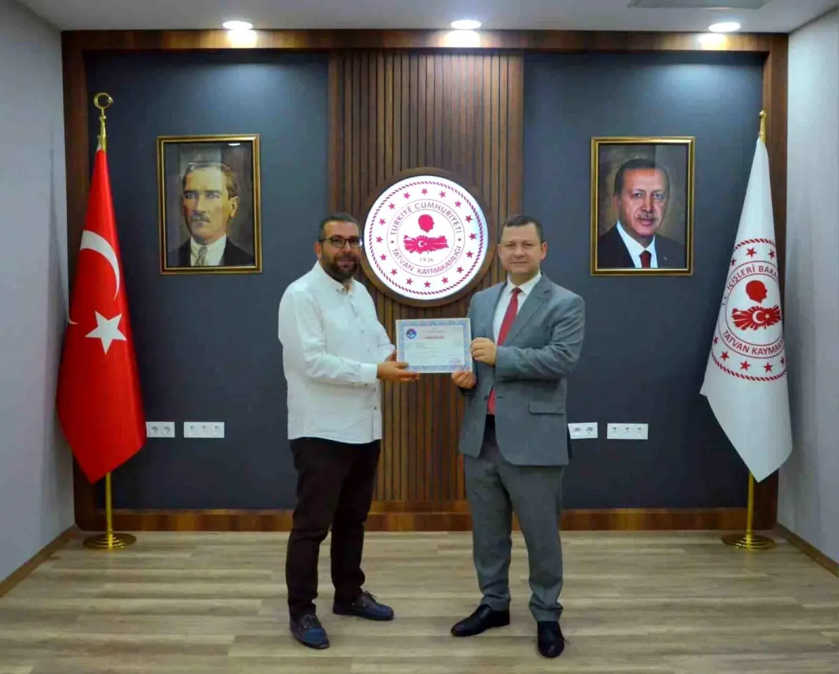 Bitlis’in Tatvan ilçesinde arabanın motor bölmesine giren yavru Kedi, üç kent dolaştıktan sonra annesine kavuşturan öğretmenlerden Umut Karacar’a, sergilediği örnek davranış hasebiyle Kaymakam Yiğit Yaşar Demirer tarafından muvaffakiyet evrakı takdim edildi.
